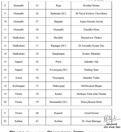 प्रशांत किशोर ने कहा कि तीसरी सूची भी जल्द ही जारी की जाएगी, जिसमें कुछ महिला और युवा चेहरों को प्राथमिकता दी जाएगी। उन्होंने यह भी दावा किया कि जन सुराज बिहार में “विकल्प नहीं, परिवर्तन” बनकर उभरेगा। पूरी सूची नीचे देखें :-