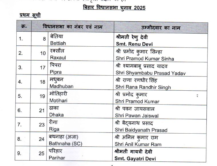 पहली सूची जारी होने के बाद एनडीए के अंदर कुछ छोटे दलों में सीटों को लेकर असंतोष की चर्चा भी है। हालांकि बीजेपी के रणनीतिकारों का मानना है कि यह सूची दलगत तालमेल और संगठन की दीर्घकालिक रणनीति को ध्यान में रखकर तैयार की गई है।