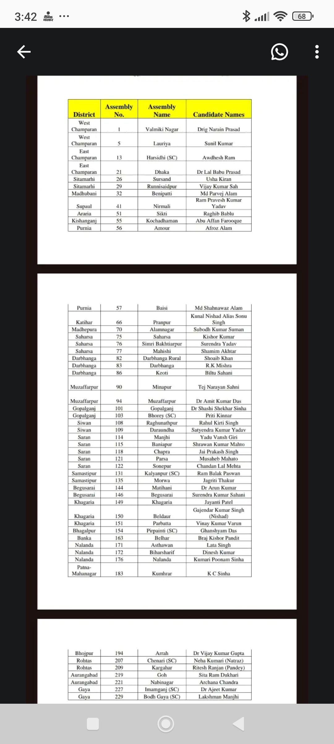सूची में कई अनुसूचित, अति पिछड़ा व अल्पसंख्यक क्षेत्रों का ध्यान रखते हुए सीटें बांटी हैं; सूची में ट्रांसजेंडर समुदाय से प्रीति (भोरे, गोपालगंज) का नाम भी शामिल है।