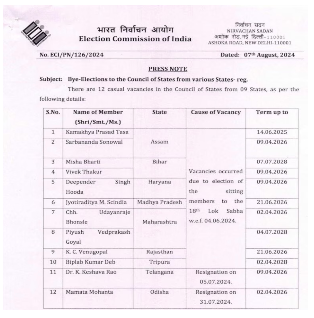 Rajya Sabha Bye-Election : तारीख हुई घोषित, 9 राज्यों की 12 सीटों पर होने जा रहा चुनाव