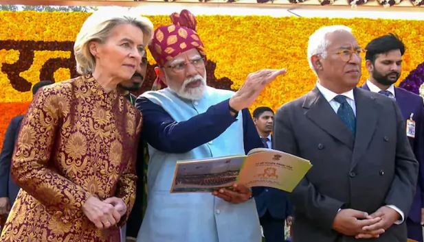इस वर्ष के गणतंत्र दिवस समारोह को अंतरराष्ट्रीय स्तर पर विशेष महत्व मिला, क्योंकि यूरोपीय यूनियन के दो शीर्ष नेता—यूरोपीय आयोग की अध्यक्ष उर्सुला वॉन डेर लेयेन और यूरोपीय परिषद के अध्यक्ष एंतोनियो कोस्टा—विशिष्ट अतिथि के रूप में शामिल हुए। समारोह के दौरान प्रधानमंत्री नरेंद्र मोदी को कर्तव्य पथ पर परेड के समय दोनों अतिथियों को व्यक्तिगत रूप से विभिन्न झांकियों, उनकी थीम और संदेशों के बारे में जानकारी देते हुए देखा गया। इस दृश्य को कई मीडिया संस्थानों ने भारत-EU के बढ़ते रणनीतिक और राजनीतिक विश्वास के प्रतीक के रूप में रेखांकित किया।